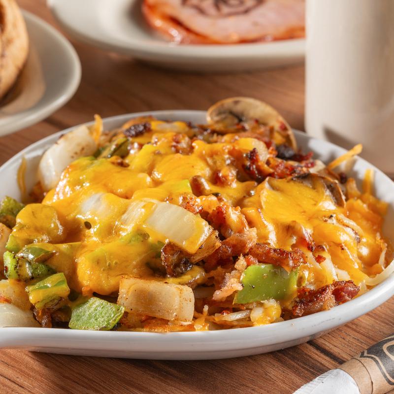 All omelettes are served with a choice of toast. Add hashbrowns or seasoned diced potatoes for +$0.99. All skillets are mixed with seasoned diced potatoes and scrambled eggs unless otherwise requested and served with toast.