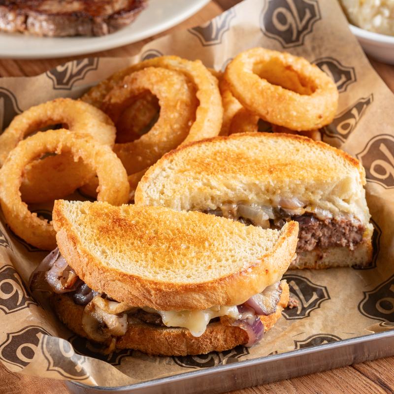 Our burgers are served with a fresh 1/2lb patty, sourced locally from Byron Center Meats • Served with homemade chips • Upgrade to fries or tots +$0.99 | Upgrade to onion rings +$1.99 | Sub a pretzel bun +$1.99 | Sub a black bean burger for no additional charge